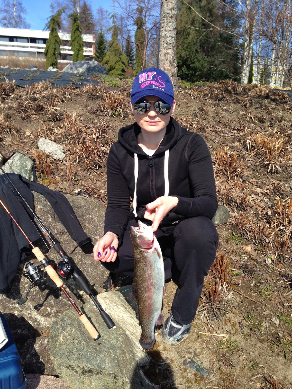 Vuoden 2014 kesäkalastuskausi alkoi jo huhtikuussa. Lähellä sijaitseva vapaakalastuslampi oli ensimmäisten reissujen kohteena. Pari kirjolohta sieltä nousikin..